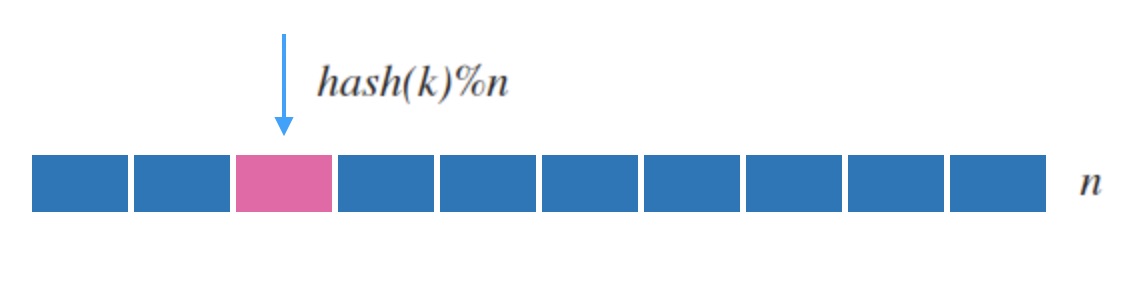 一般地,常见的哈希函数(如 md5, sha1)都是映射到uint32这样很大的空间的, 所以哈希表一般对哈希函数的结果取余数来映射到槽位, 即 hash(k)%n 。 因为 hash 函数本身保证了映射的分布平均 和 一致性, 所以求余后的结果也符合我们的要求。