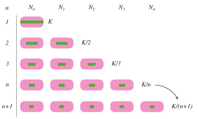 就像细胞分裂一样, N4 刚加入时可以直接算作时 N3 的一部分, N3 算作一个大节点, 当数据对齐后, N4 再从 N3 中分裂出来,正式成为新节点。